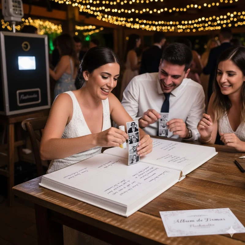 La magia del recuerdo impreso al instante. Perfecto para bodas y fiestas donde quieras un álbum de firmas físico y que cada invitado se lleve su tira de fotos.